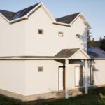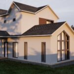 Bu ev, modern mimarisi ve minimalist tasarımıyla dikkat çekiyor. Beyaz ve ahşap kaplamaların uyumu, eve sıcak ve zarif bir görünüm kazandırmış. Geniş pencereleri ve koyu renkli çatısı sayesinde, modern yaşamın tüm gereksinimlerini karşılayacak şekilde tasarlanmış.
