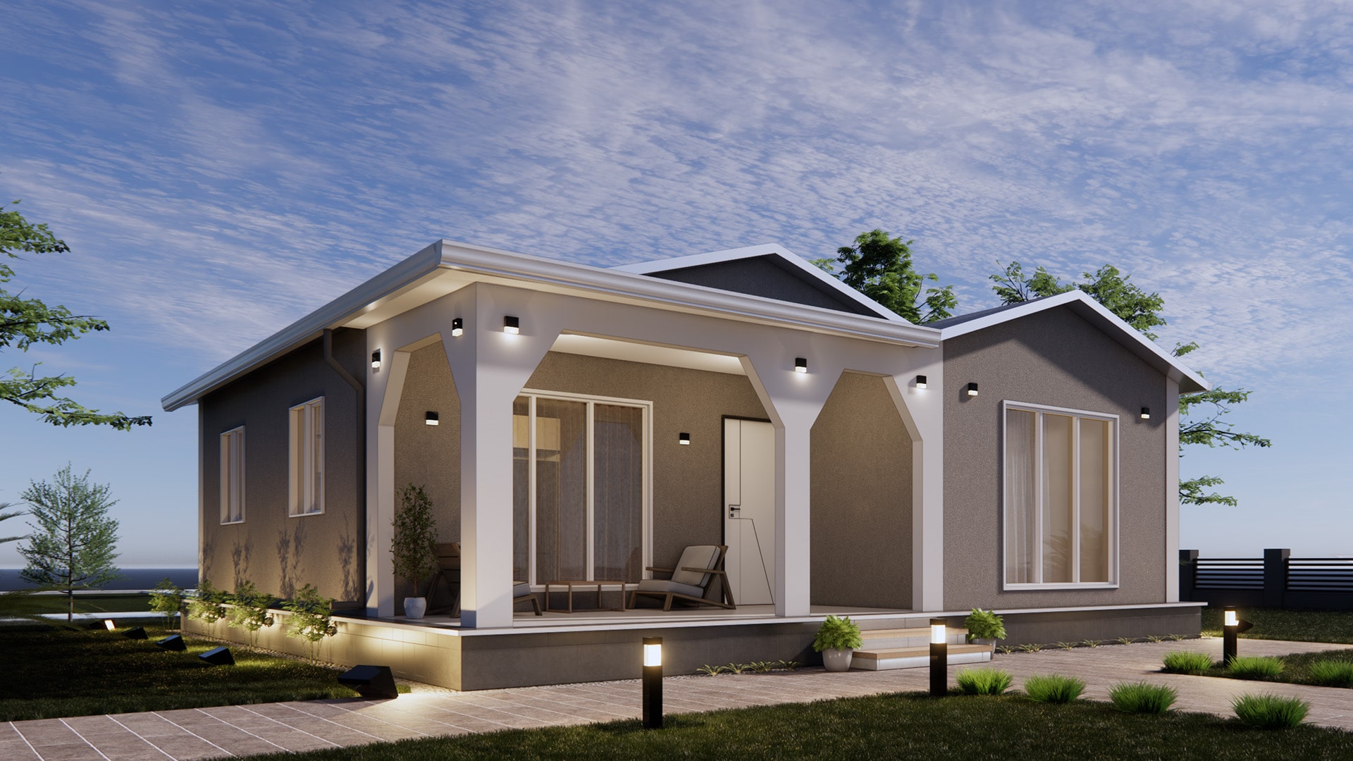 Modern yaşamın gereksinimlerine yanıt veren şık ve fonksiyonel bir yapı olarak öne çıkıyor. Dış cephedeki estetik detaylar, geniş veranda ve ferah iç mekanlar, hem konforlu hem de pratik bir yaşam alanı sunuyor. Enerji verimliliği ve sürdürülebilirliği göz önünde bulundurarak tasarlanmış olan bu ev, geleceğin konut anlayışına uyum sağlıyor. İster şehirde ister doğayla iç içe bir bölgede yaşamayı tercih edin, bu prefabrik ev, ideal bir yaşam alanı yaratmak için mükemmel bir seçenek sunuyor.
