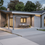 Bu modern ev, minimalist tasarımı ve doğayla uyumlu yapısıyla dikkat çekiyor. Evin dış cephesi ahşap kaplama ile kaplanmış ve gri tonlarında boyanmıştır. Bu kaplama, eve hem doğal bir görünüm kazandırmakta hem de çağdaş bir estetik sağlamaktadır.